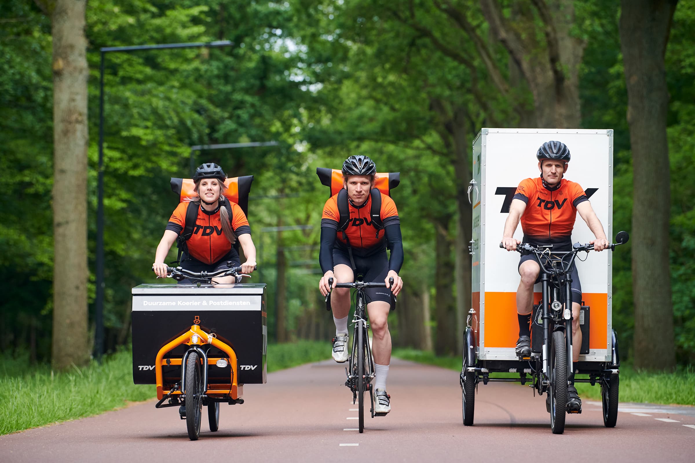Met (elektrische) vrachtfietsen vervoeren onze fietskoeriers de hele dag op duurzame wijze allerlei goederen door Breda, Eindhoven, Helmond, Tilburg en omgeving. Tour de Ville fietskoeriers (TDV) bezorgd duurzaam en met een glimlach.